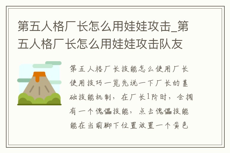 第五人格廠長怎么用娃娃攻擊_第五人格廠長怎么用娃娃攻擊隊友