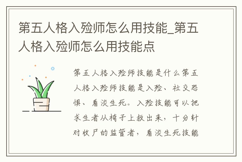 第五人格入殮師怎么用技能_第五人格入殮師怎么用技能點(diǎn)