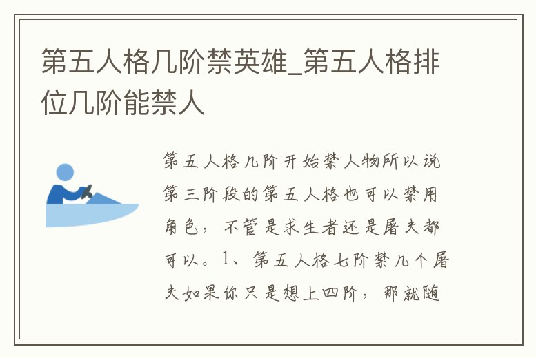 第五人格幾階禁英雄_第五人格排位幾階能禁人