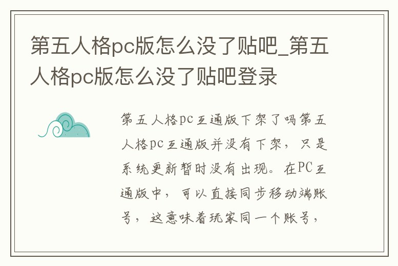 第五人格pc版怎么沒了貼吧_第五人格pc版怎么沒了貼吧登錄