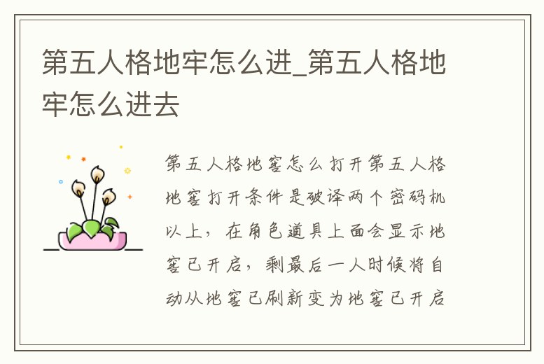 第五人格地牢怎么進_第五人格地牢怎么進去
