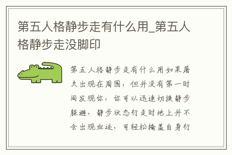 第五人格靜步走有什么用_第五人格靜步走沒腳印