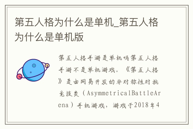 第五人格手游是單機嗎第五人格手游不是單機游戲。《第五人格》是由網易開發的非對稱性對抗競技類(AsymmetricalBattleArena)手機游戲,游戲于2018年4月2日開啟公測。該游戲采用了蒂姆-伯頓式的哥特畫風,人物采用線縫制的布偶設定。玩家將分別扮。1、第五人格是不是單機游戲不是,是多人在線手游。游戲類型:非對稱對抗競技游戲游戲平臺:An