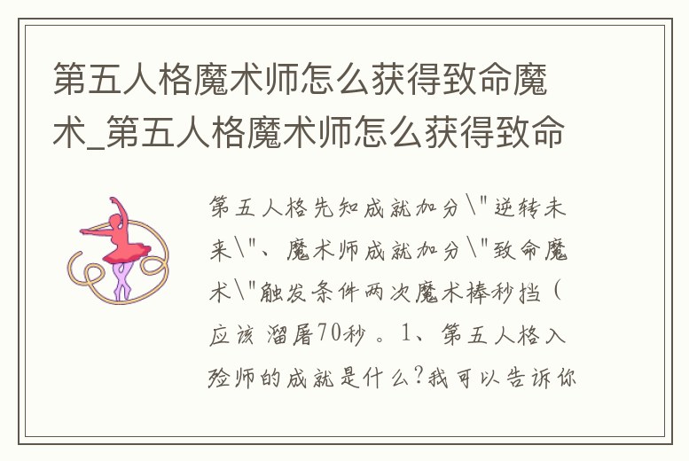 第五人格魔術師怎么獲得致命魔術_第五人格魔術師怎么獲得致命魔術師的