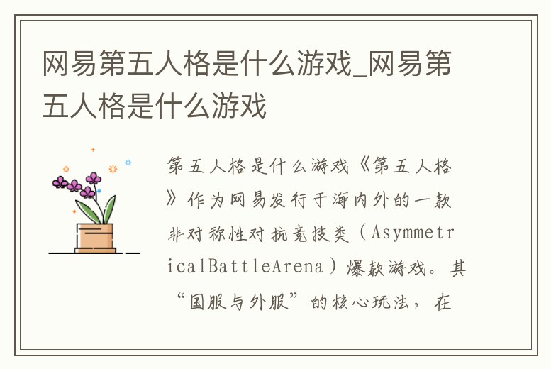 《第五人格》發布時間2017年5月20日,游戲于2018年4月2日開啟公測。《第五人格》是由網易開發的非對稱性對抗競技類(AsymmetricalBattleArena)游戲,游戲于2018年4月2日開啟公測。玩家將扮演偵探奧爾菲斯,在收。