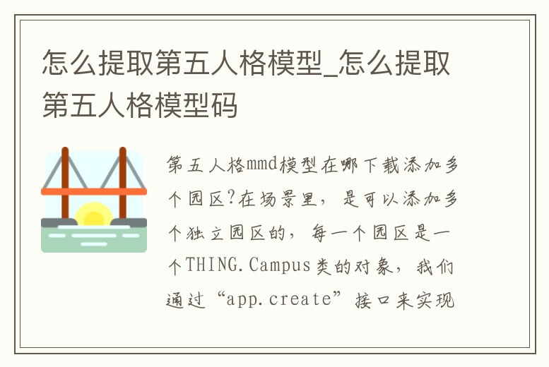 第五人格mmd模型在哪下載添加多個園區?在場景里,是可以添加多個獨立園區的,每一個園區是一個THING.Campus類的對象,我們通過“app.create”接口來實現。varapp=newTHING.App();varcampus1=a