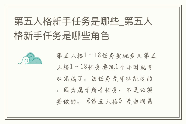 第五人格新手任務是哪些_第五人格新手任務是哪些角色