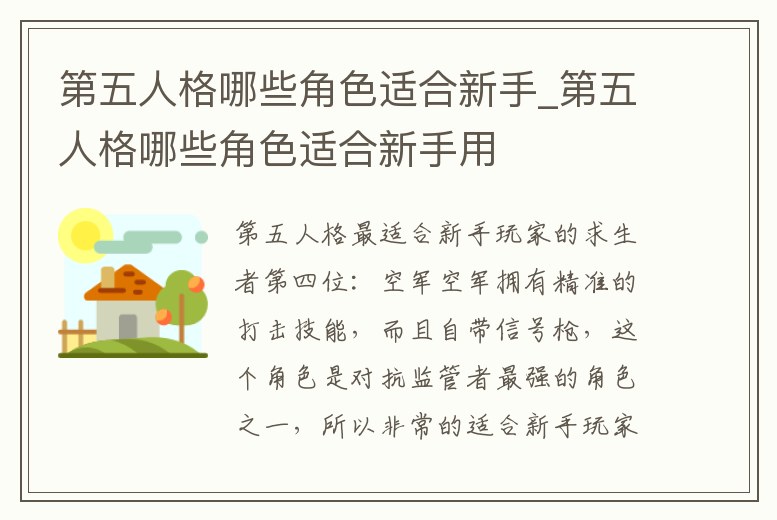 第五人格哪些角色適合新手_第五人格哪些角色適合新手用