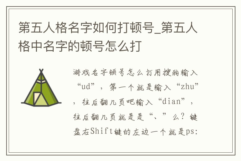 游戲名字頓號怎么打用搜狗輸入“ud”,第一個就是輸入“zhu”,往后翻幾頁吧輸入“dian”,往后翻幾頁就是是“、”么?鍵盤右Shift鍵的左邊一個就是ps:你也可以直接復制過去哦問題二:游戲名中“頓號”怎么打丶ZHU問題三:。1、名字中的頓號怎么打1,輸入法調成中文