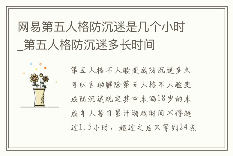 網易第五人格防沉迷是幾個小時_第五人格防沉迷多長時間