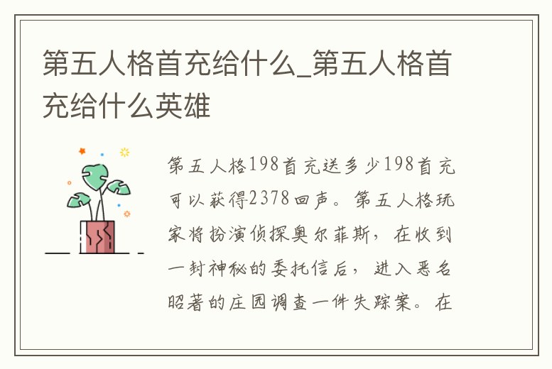 第五人格首充給什么_第五人格首充給什么英雄