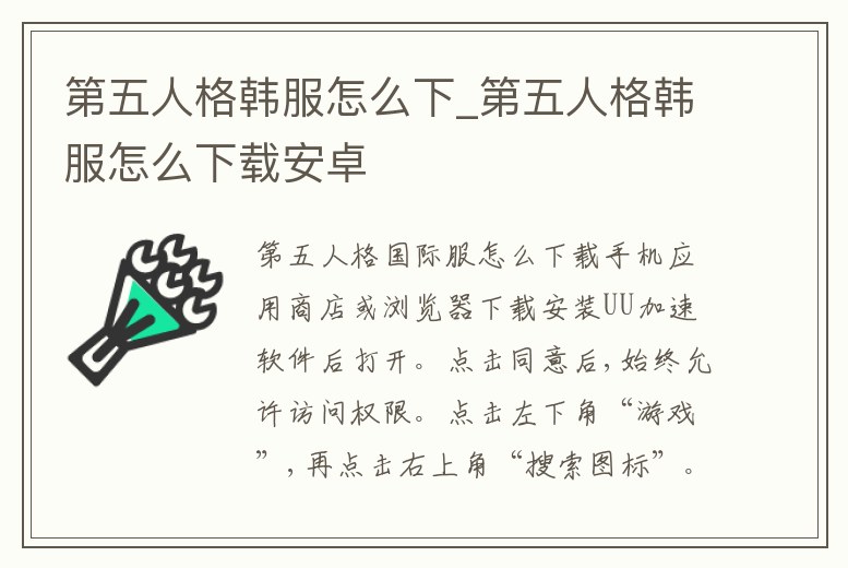 手機應用商店或瀏覽器下載安裝UU加速軟件后打開。點擊同意后,始終允許訪問權限。點擊左下角“游戲”,再點擊右上角“搜索圖標”。在搜索框內輸入“第五人格”,并選擇要下載的外服。點擊下載后,在彈出的窗口。
