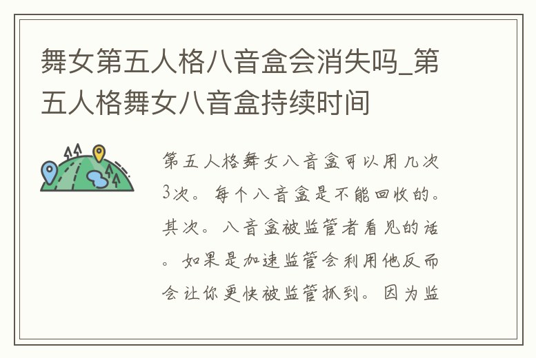 舞女第五人格八音盒會消失嗎_第五人格舞女八音盒持續時間