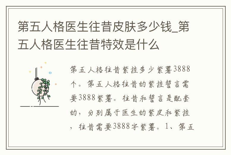 第五人格醫生往昔皮膚多少錢_第五人格醫生往昔特效是什么