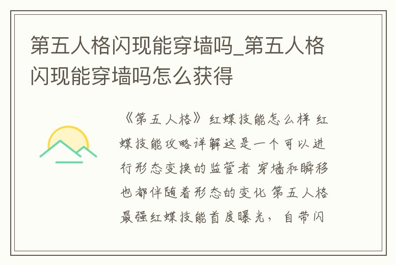 第五人格閃現能穿墻嗎_第五人格閃現能穿墻嗎怎么獲得
