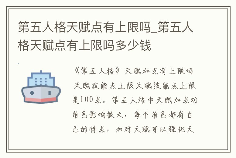 第五人格天賦點有上限嗎_第五人格天賦點有上限嗎多少錢