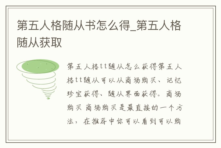 第五人格tt隨從可以從商場購買、記憶珍寶獲得、隨從界面獲得。商場購買 商場購買是最直接的一個方法,在推薦中你可以看到可以購買的隨從。通過花費回聲或碎片就能把它們領回家,但不方便的是,商場并沒有給隨從單獨的分類且。