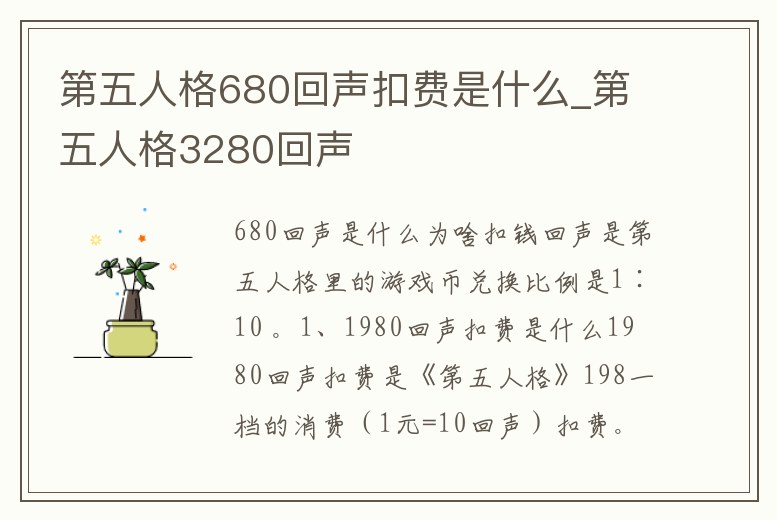 第五人格680回聲扣費是什么_第五人格3280回聲
