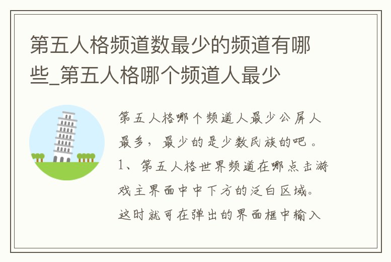 - 第五人格頻道數(shù)最少的頻道有哪些_第五人格哪個(gè)頻道人最少