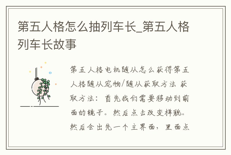 第五人格隨從寵物/隨從獲取方法 獲取方法:首先我們需要移動到前面的鏡子。然后點擊改變樣貌。然后會出先一個主界面,里面點擊隨從就可以隨便查看啦。如果想要解鎖的話是需要線索購買的。線索是可以通過匹配或者排位獲。