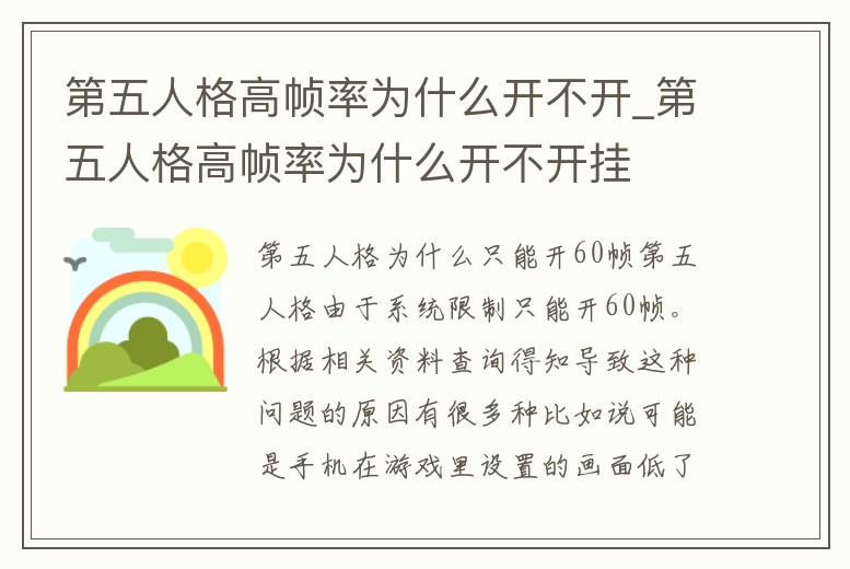 第五人格高幀率為什么開不開_第五人格高幀率為什么開不開掛