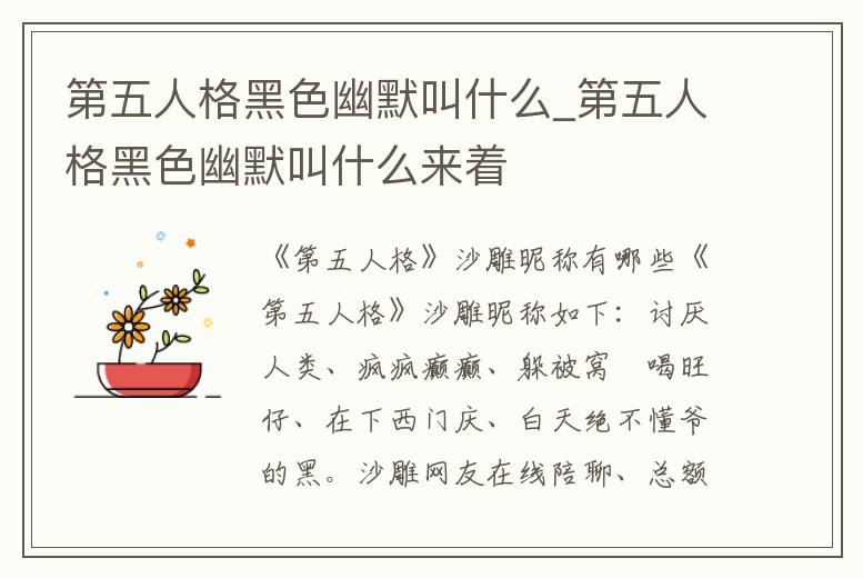 第五人格黑色幽默叫什么_第五人格黑色幽默叫什么來著