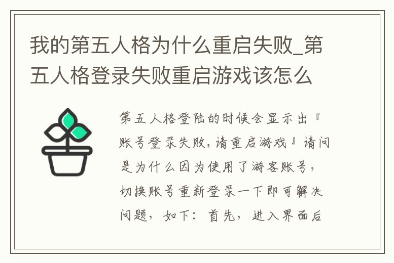 - 我的第五人格為什么重啟失敗_第五人格登錄失敗重啟游戲該怎么辦