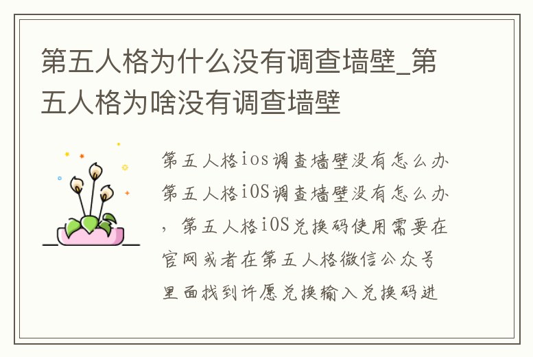 第五人格ios調查墻壁沒有怎么辦第五人格iOS調查墻壁沒有怎么辦,第五人格iOS兌換碼使用需要在官網或者在第五人格微信公眾號里面找到許愿兌換輸入兌換碼進行兌換。1、第五人格兌換碼入口沒有調查墻沒有。根據查詢第五人格游戲相關資料得知;兌換碼入口沒有調查墻,直接輸入即可。第五人格是一款非對稱性對抗競技類的游