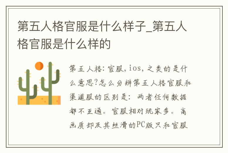 第五人格:官服,ios,之類的是什么意思?怎么分辨第五人格官服和渠道服的區(qū)別是:兩者任何數(shù)據(jù)都不互通。官服相對(duì)玩家多。高畫質(zhì)卻及其絲滑的PC版只和官服互通,渠道服沒有獨(dú)立的PC版,而模擬器的流暢度不太理想。背景設(shè)定20世紀(jì)歐洲,有一對(duì)年輕的
