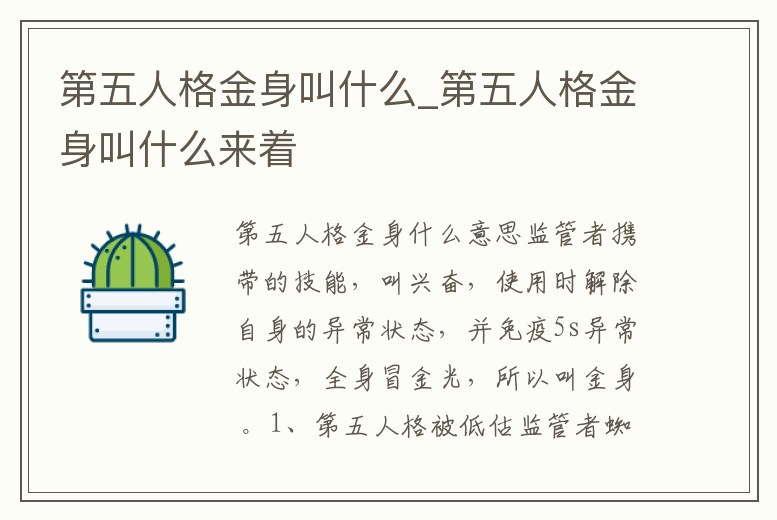 監管者攜帶的技能,叫興奮,使用時解除自身的異常狀態,并免疫5s異常狀態,全身冒金光,所以叫金身 。