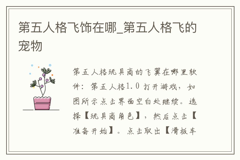第五人格飛飾在哪_第五人格飛的寵物