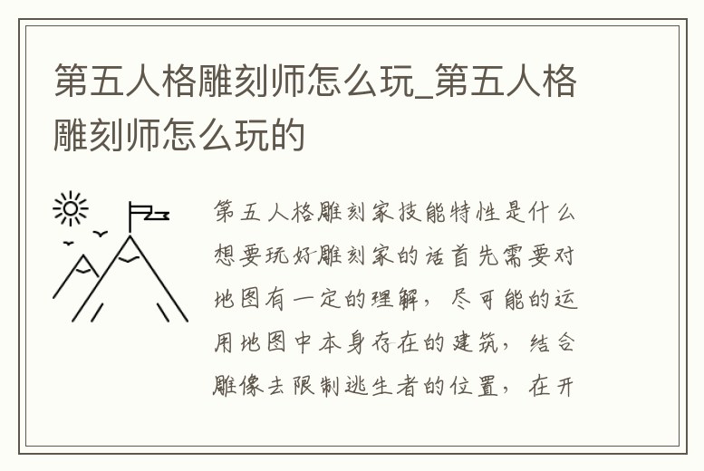 第五人格雕刻師怎么玩_第五人格雕刻師怎么玩的