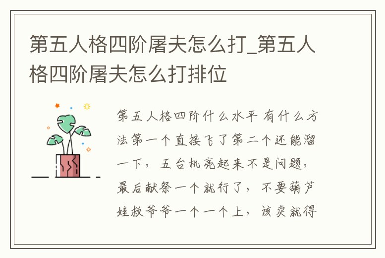 第五人格四階屠夫怎么打_第五人格四階屠夫怎么打排位