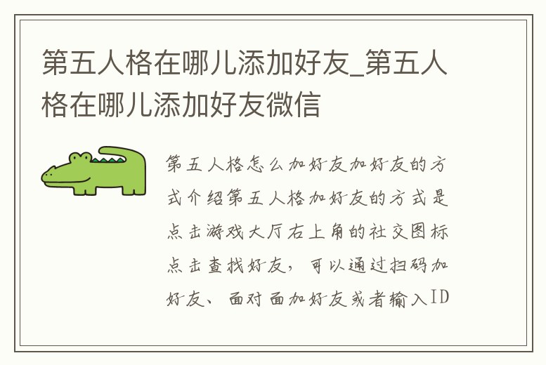 第五人格在哪兒添加好友_第五人格在哪兒添加好友微信