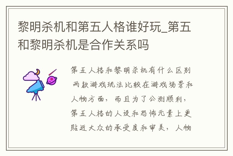 黎明殺機和第五人格誰好玩_第五和黎明殺機是合作關系嗎