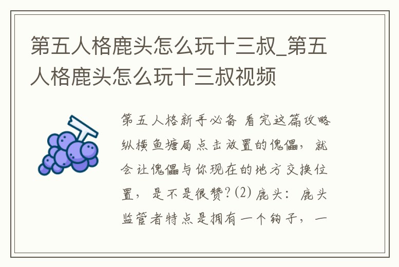 第五人格鹿頭怎么玩十三叔_第五人格鹿頭怎么玩十三叔視頻