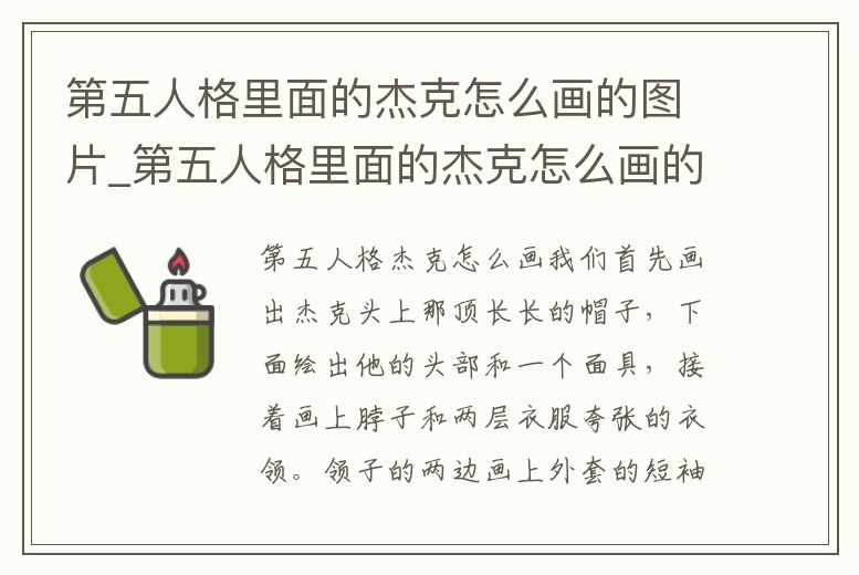 第一步畫出杰克大魔王的腦袋。第二步畫出杰克大魔王的上半身。第三步畫出杰克大魔王的雙腿。最后用彩鉛把杰克大魔王涂上顏色。請點擊輸入圖片描述 “杰克”,游戲《第五人格》中的角色,屬于監管者。中世紀的倫敦,開膛手。
