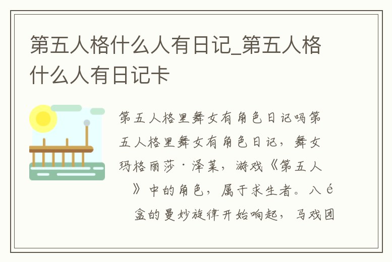 第五人格里舞女有角色日記嗎第五人格里舞女有角色日記,舞女瑪格麗莎·澤萊,游戲《第五人格》中的角色,屬于求生者。八音盒的曼妙旋律開始響起,馬戲團舞臺兩側的大幕緩緩拉開。她將用自己迷人的二重奏旋律,來掌控這場生死游戲的結局。欣賞一支舞,聆聽。1、第五人格出了幾個日記1,只