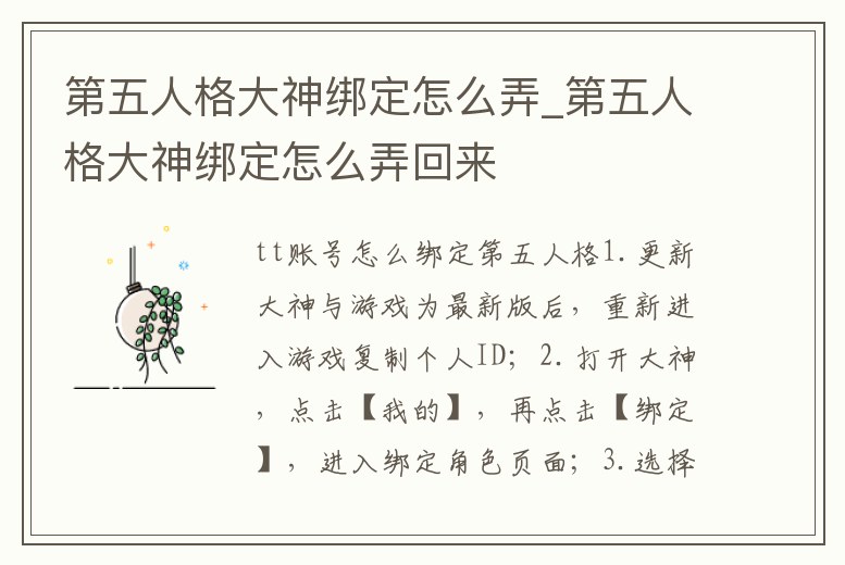 8、網易第五人格大神綁定怎么弄?d(?д?)在線求解答,和過程
