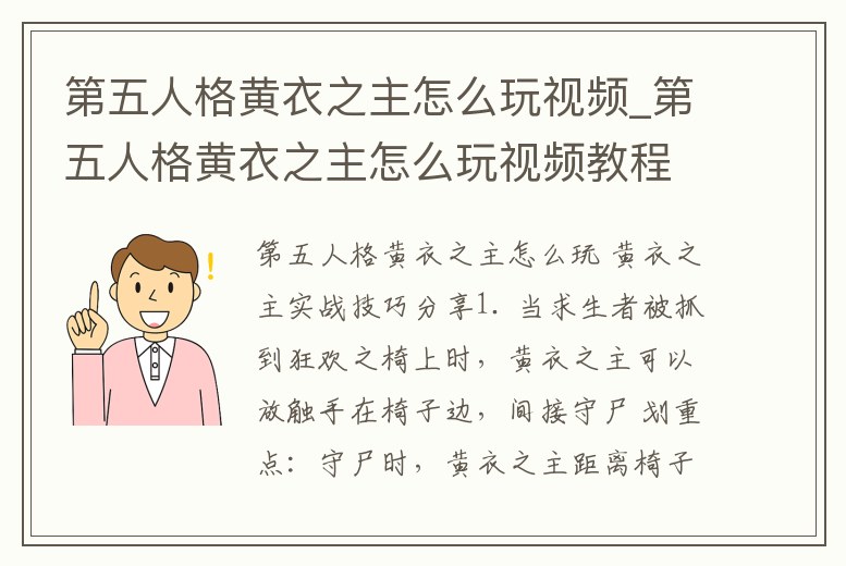 第五人格黃衣之主怎么玩視頻_第五人格黃衣之主怎么玩視頻教程