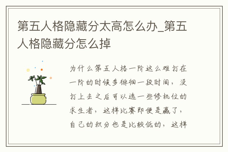 第五人格隱藏分太高怎么辦_第五人格隱藏分怎么掉