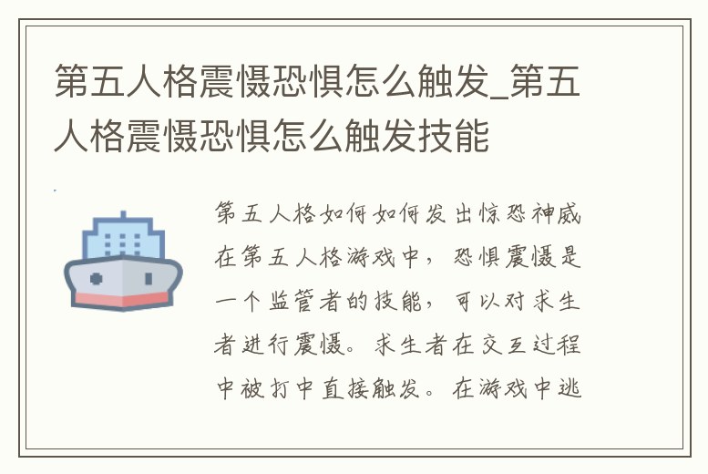 - 第五人格震懾恐懼怎么觸發(fā)_第五人格震懾恐懼怎么觸發(fā)技能
