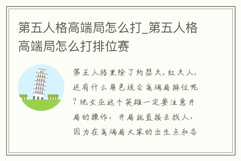 第五人格高端局怎么打_第五人格高端局怎么打排位賽