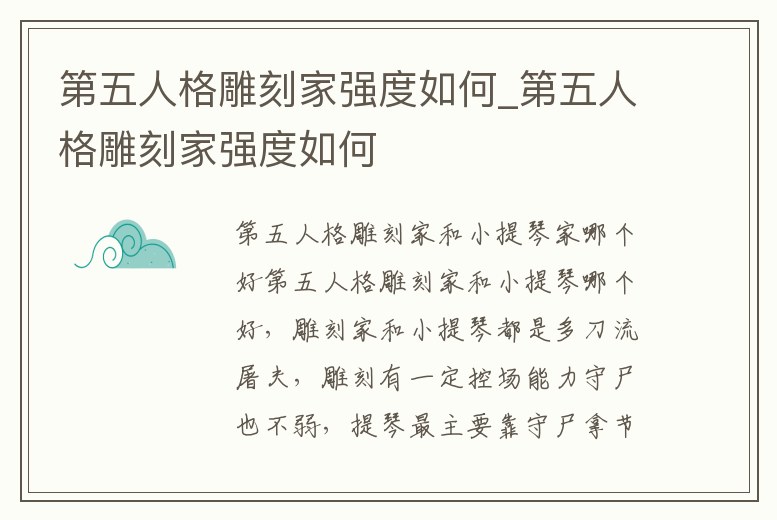 第五人格雕刻家和小提琴哪個好,雕刻家和小提琴都是多刀流屠夫,雕刻有一定控場能力守尸也不弱,提琴最主要靠守尸拿節奏可以小干擾修機,兩個屠夫強度都不錯,建議可以都試試選擇一個自己用著順手的。