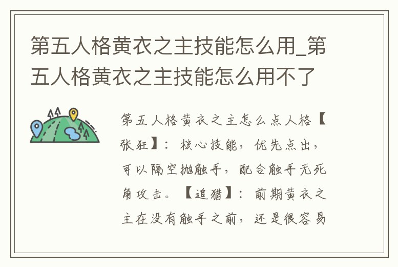 第五人格黃衣之主技能怎么用_第五人格黃衣之主技能怎么用不了