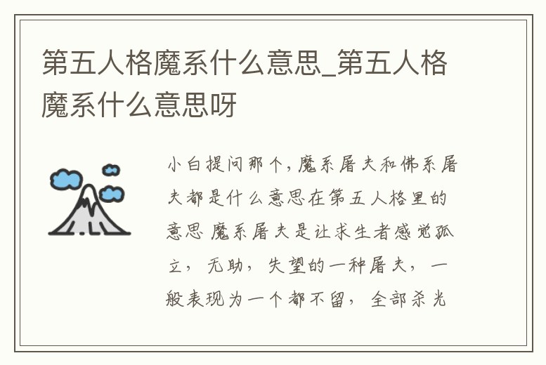 在第五人格里的意思 魔系屠夫是讓求生者感覺孤立,無助,失望的一種屠夫,一般表現為一個都不留,全部殺光,而佛系則是看心情以及求生者表現,如果是一群大佬對付佛系,佛系則會變魔系,如果是新手或者可憐巴巴的,就一。