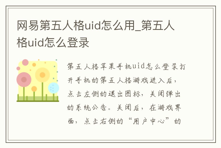 網(wǎng)易第五人格uid怎么用_第五人格uid怎么登錄