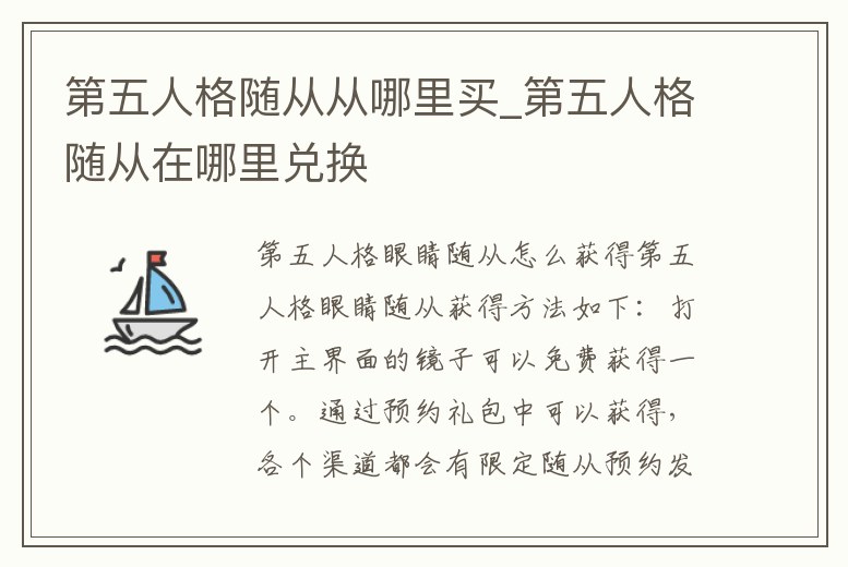 第五人格眼睛隨從獲得方法如下:打開主界面的鏡子可以免費獲得一個。通過預約禮包中可以獲得,各個渠道都會有限定隨從預約發放。購買獲得,在幻象大廳中進行購物可以挑選隨從。