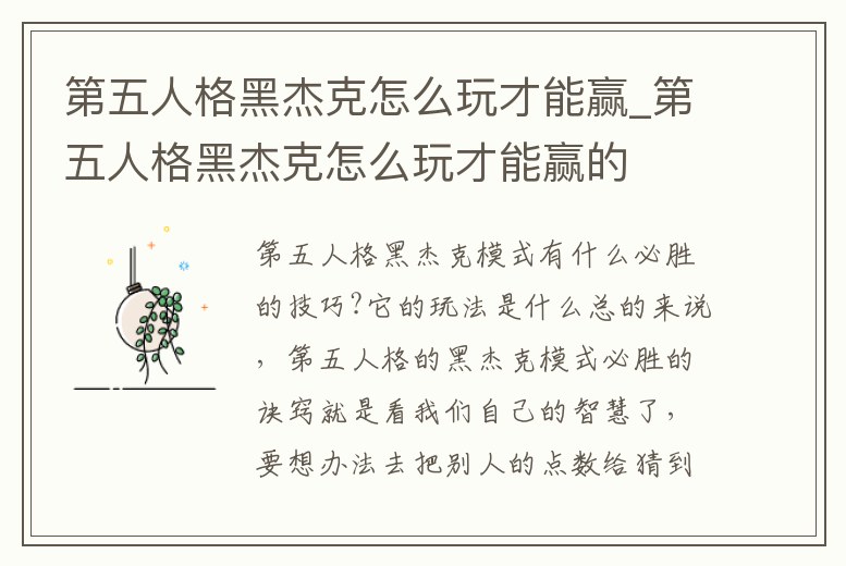 第五人格黑杰克怎么玩才能贏_第五人格黑杰克怎么玩才能贏的
