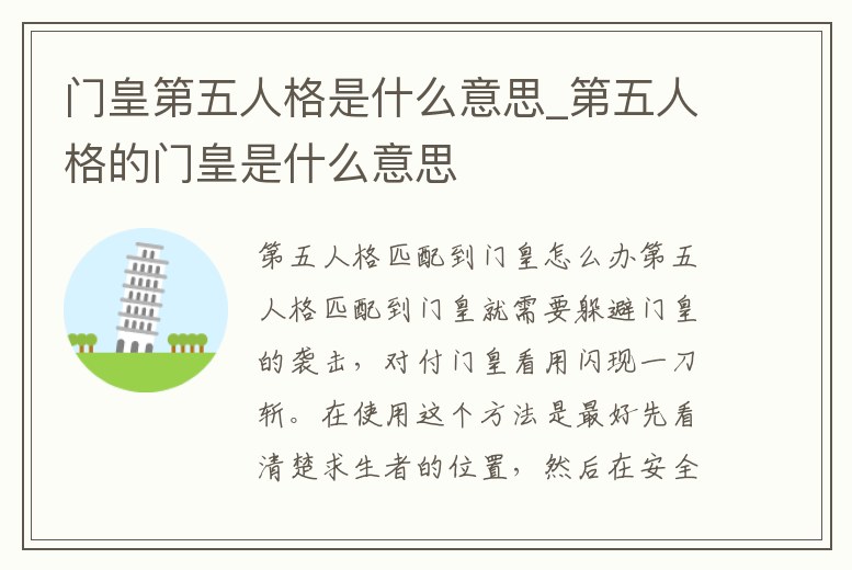 門皇第五人格是什么意思_第五人格的門皇是什么意思